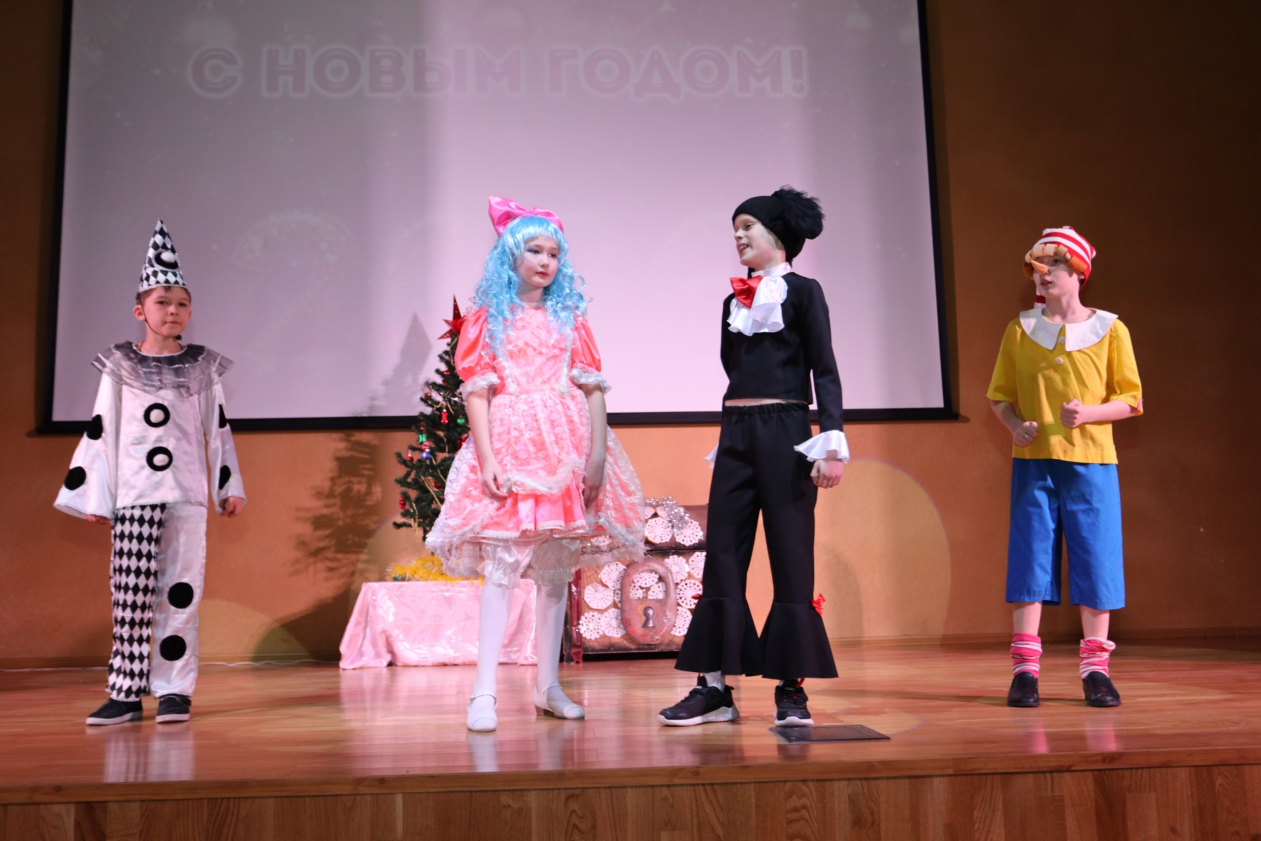 В преддверии Нового года ребята представили на суд зрителя свои первые постановки «Гостья из будущего», «На волшебника надо учиться» и «Новогодний бал». Ежегодно одиннадцатиклассники дарят новогодний спектакль ученикам 8-11 классов – это стало хорошей школьной традицией. В этом году выпускники показали спектакль «Снегурочка в стране чудес».